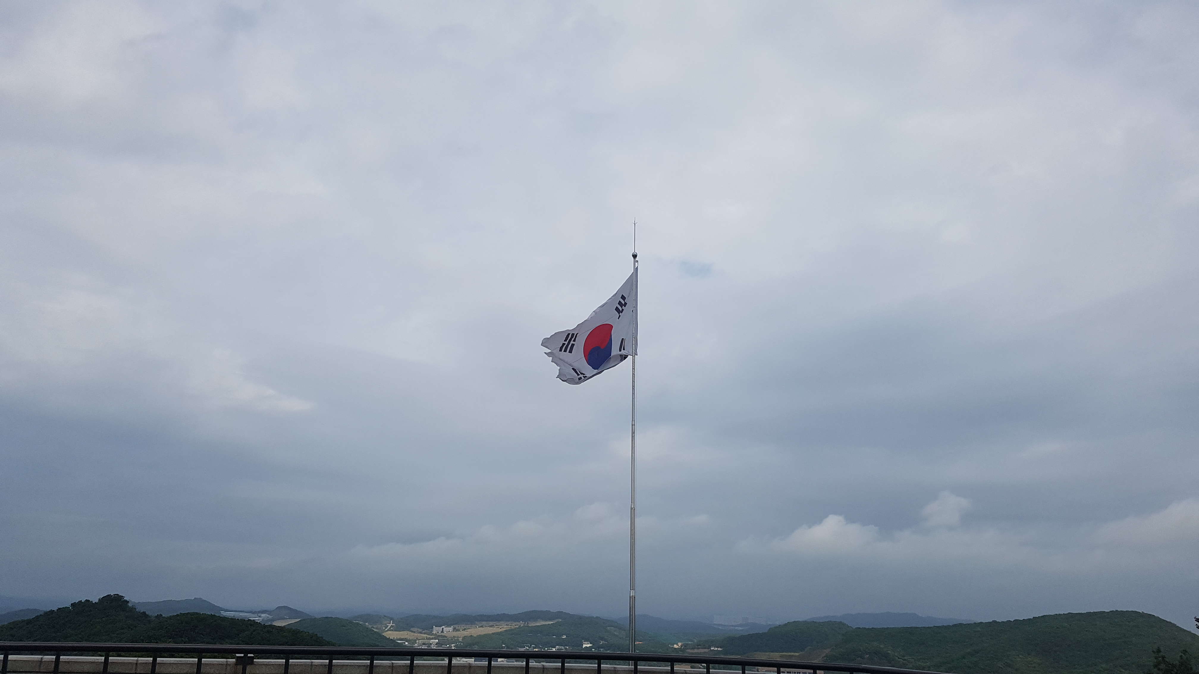 사진은 오두산 통일전망대에서 찍은 태극기입니다.