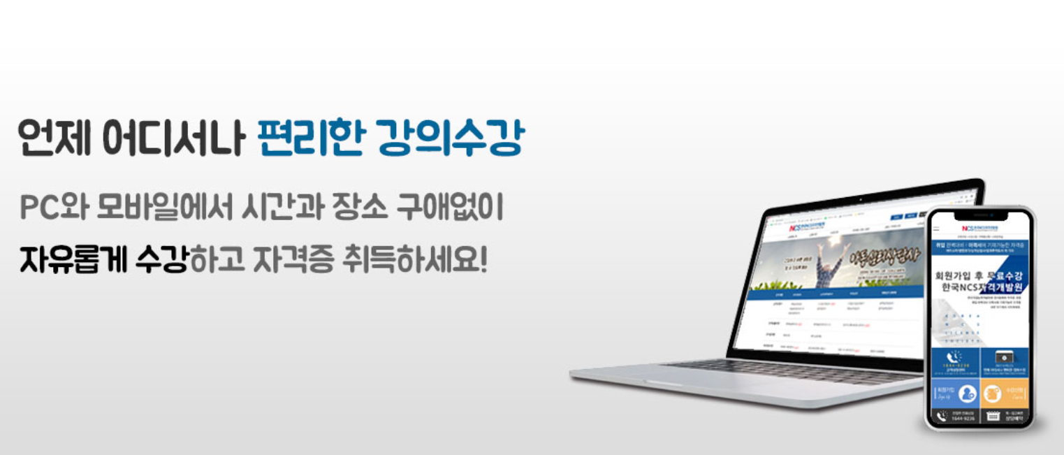예전에는 이러한 민간자격증을 취득하기 위해 비싼돈 들여 학원에 다니고 책도 사서 공부해야 했었는데요, 이제는 인터넷이 연결된 곳이라면 어디에서든지 무료로 수강할 수 있게 된 것입니다.