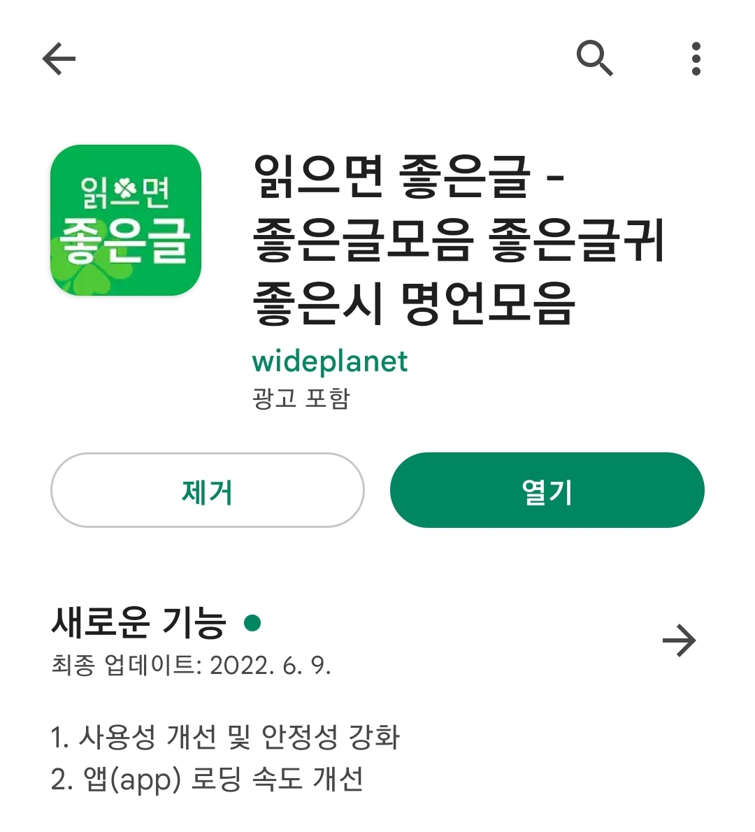구글 플레이에 먼저 접속하셔서 "좋은글모음"을 검색해 보시거나