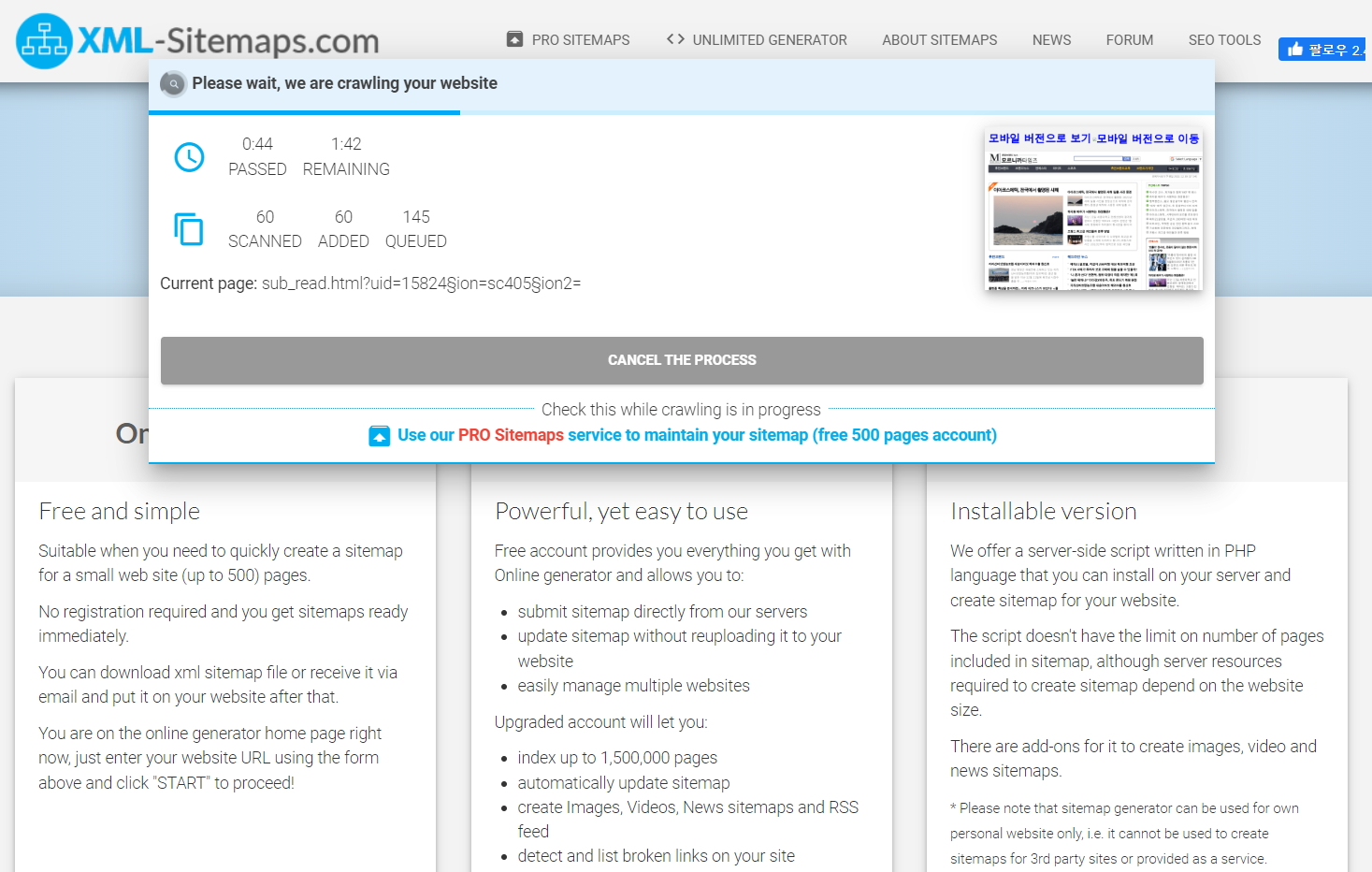 사이트 등록을 위한 사이트맵이 필요하다면 무료 계정도 충분하다.