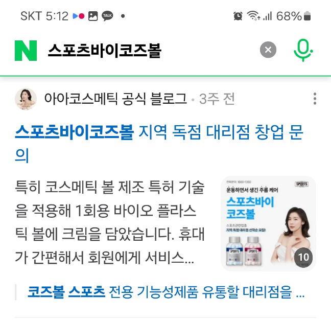 네이버에서 '스포츠바이코즈볼'을 검색해 보면 통합해서 인기글이 표시된다.