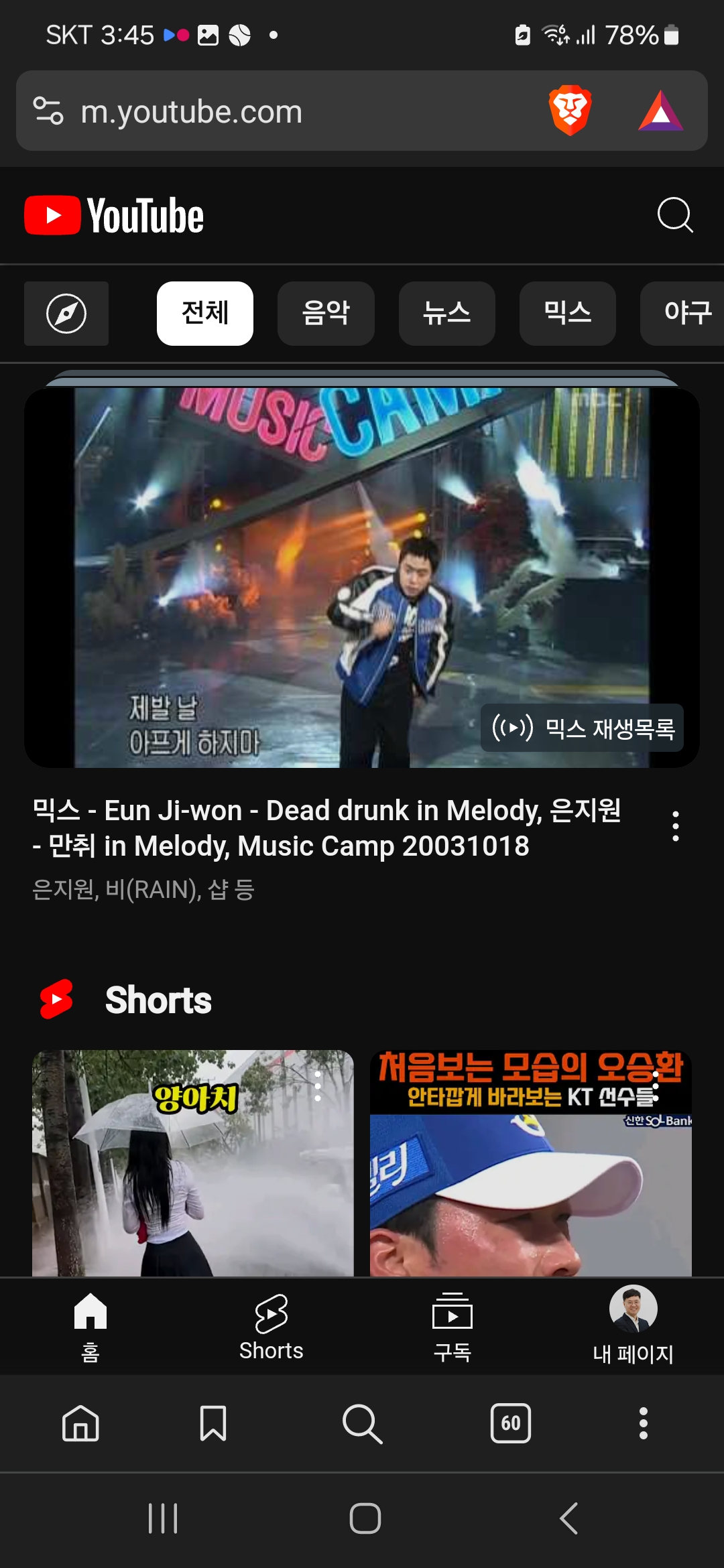 나는 매일 밤에 브레이브 웹 브라우저로 유튜브를 들으면서 잔다.