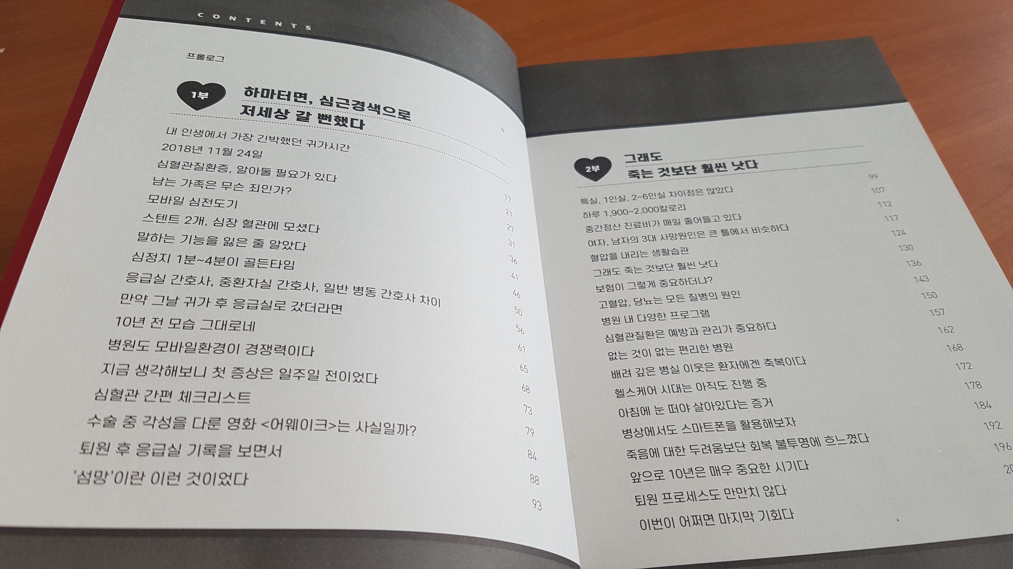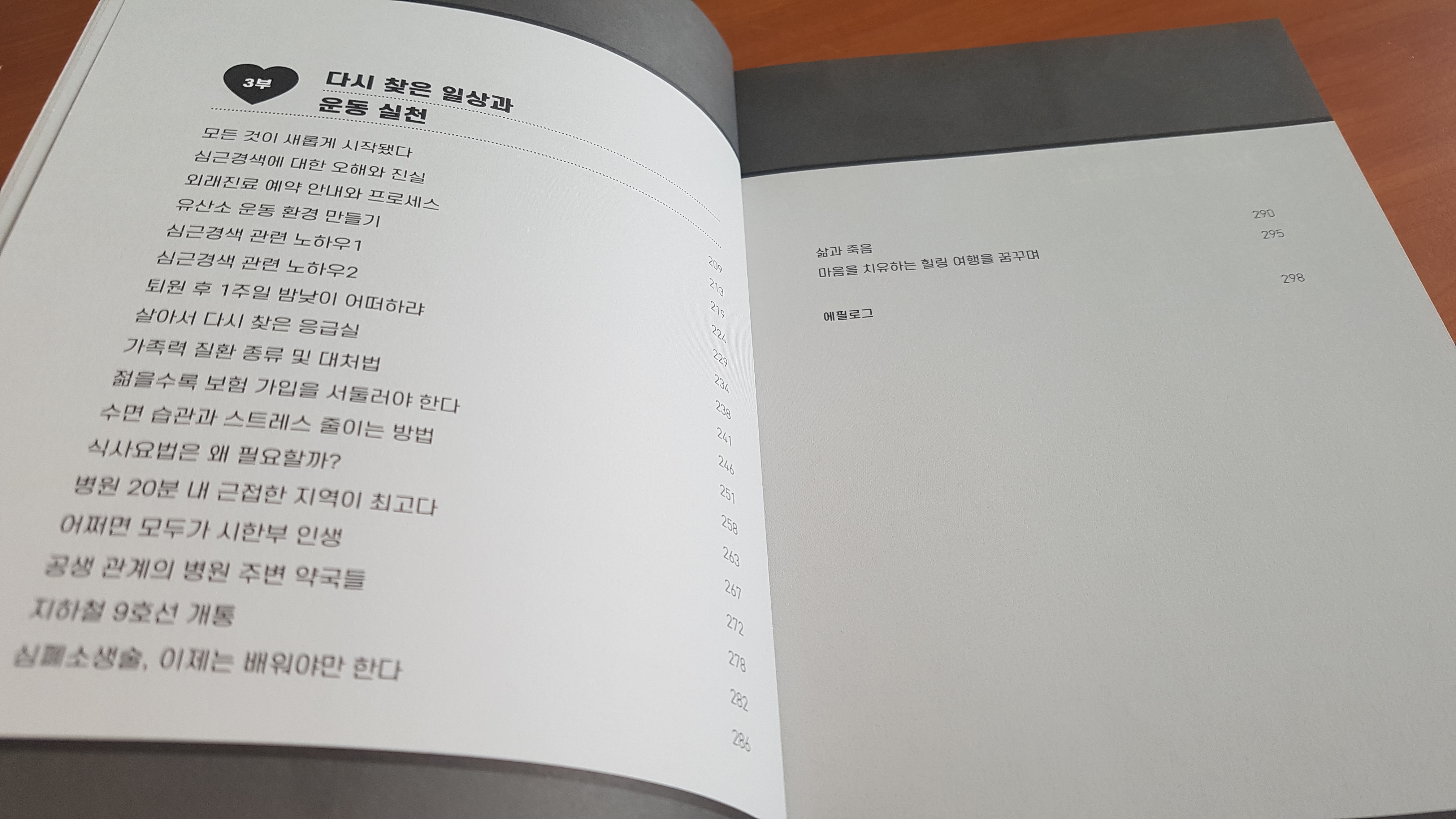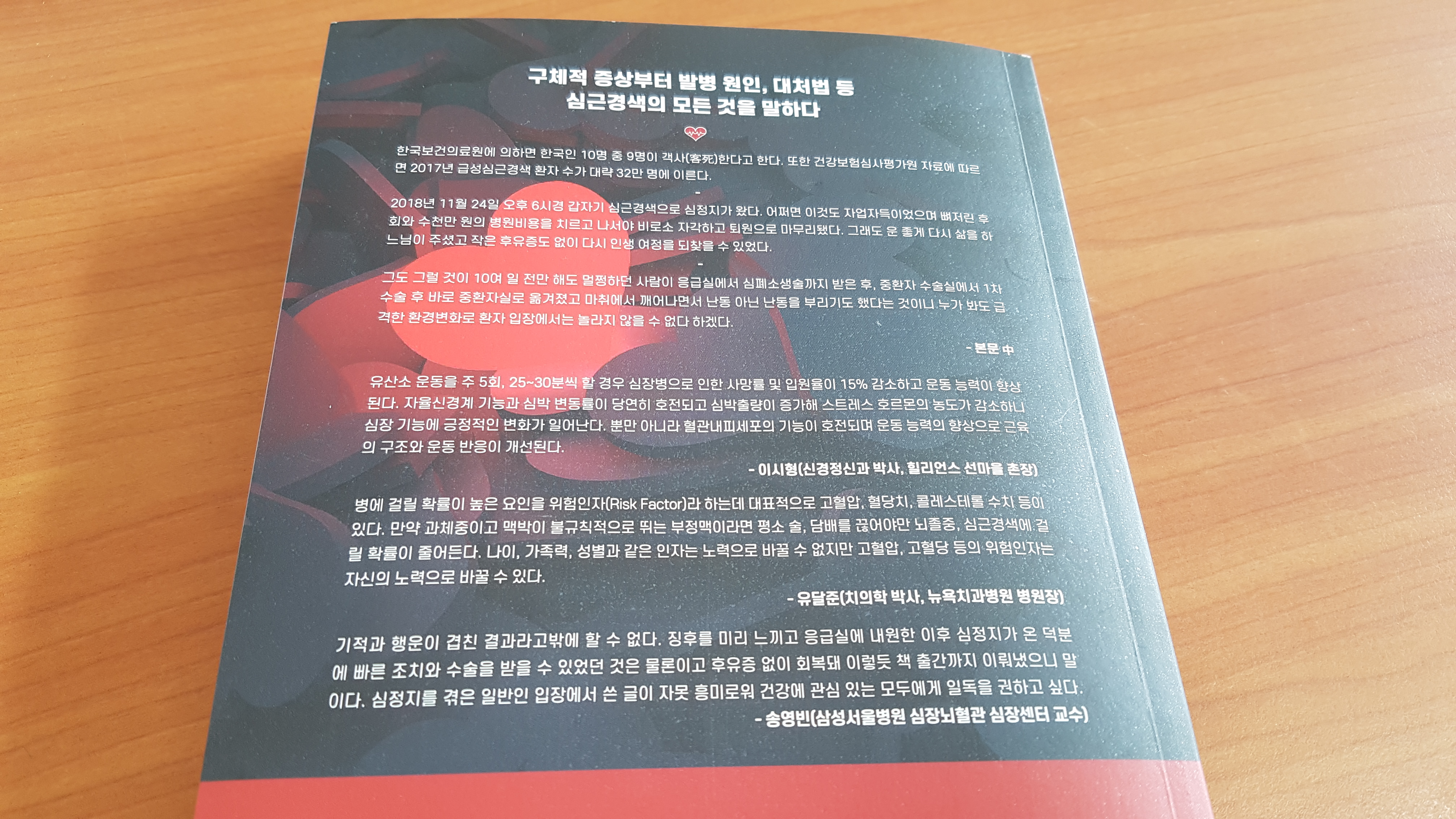 심근경색 관련 책이 몇권 있지만 경험한 환자가 쓴 책으로는 이 책이 처음라고 한다.
