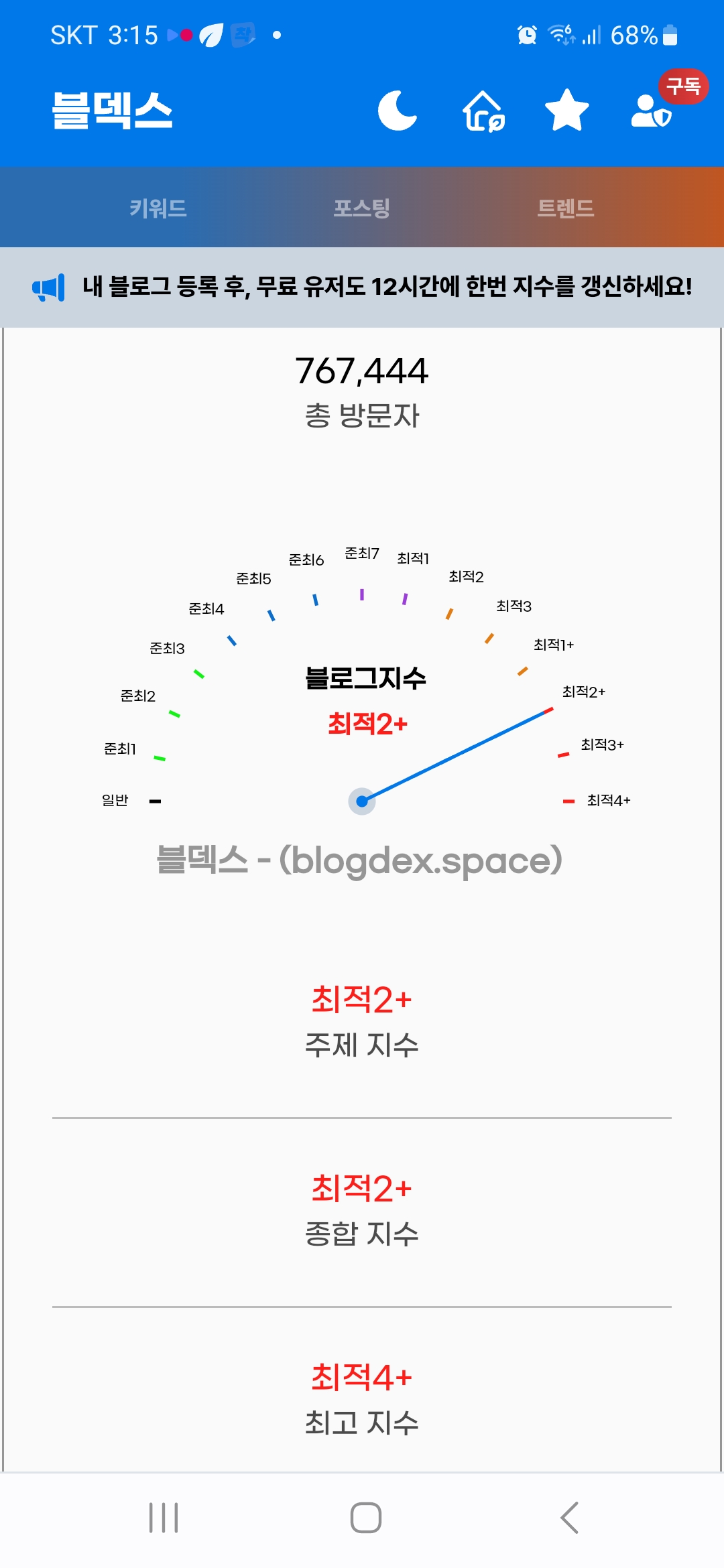 그동안 모호했던 블로그 지수를 명확하게 알려줘서 좋은 서비스라는 생각이 든다.