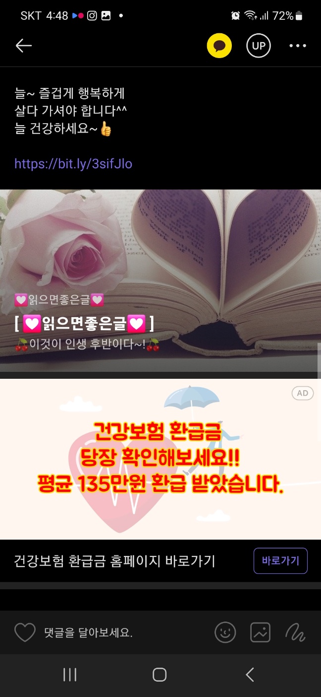 페이스북, 인스타그램 등등.. 심지어 국내 SNS인 밴드 같은 곳에도 이렇게 광고가 들어간 사례는 없는 것 같다.