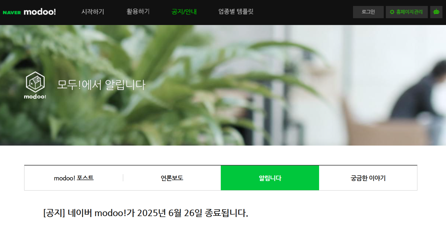 소상공인 사업자의 홈페이지 역할을 해주던 네이버 모두가 서비스 종료한다.
