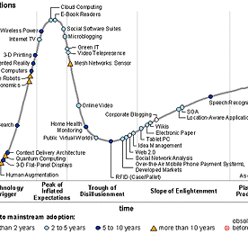 가트너 보고서 썸네일형 리스트형 Hype Cycle로 본 2009년 이슈가 된 IT기술 - 가트너그룹에서 발표하는 Hype Cycle 가트너그룹은 IT분야 기술의 트렌드와 비즈니스에의 영향력, 수용상황, 미래에 대한 예측을 가늠할 수 있는 Hype곡선(과대광고곡선)을 매년 발표하고 있습니다. 2009년에도 8월에 발표를 하였습니다. "Gartner's 2009 Hype Cycle Special Report Evaluates Maturity of 1,650 Technologies" (http://www.gartner.com/it/page.jsp?id=1124212) 새로운 기술이 나온 것이 엊그제 같은데 관심받고 이슈화되어 대중들에게 어필되어 시장에서 꽃을 피우는 기술도 있고, 또는 기술이 나온 지 한참 되어서도 대중들에게 어필하지 못한 채로 사라져가는 경우도 있습니다. 이러한 기술들의 시간에 따른 특징을 보면, 하나는 시간에 따라서 기.. 더보기 이전 1 다음