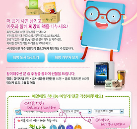 매일매일책나눔 썸네일형 리스트형 또다시 찾아온 책나눔 이벤트로 희망을 전하세요~ ^^ 연초에 진행했던 책나눔 이벤트에 참여하여 큰 보람을 느꼈습니다. (관련글: http://www.ggamnyang.com/967) 종현이에게도 30권의 책을 보내주었고, 굿네이버스에게도 30권의 책을 보낼 수 있었습니다. 가슴이 따뜻해지는 경험이었습니다.(관련글: http://ggamnyang.com/980) 여러분도 이런 책나눔 이벤트에 참여해보는건 어떨까요? 아주 작은 실천으로 가슴이 따뜻해지는 경험을 하실 수 있습니다. 많은 시간이 드는 것도 아니구요~ 어떻게 참여하냐구요? 아주 간단합니다. 책나눔이벤트 시즌2 참여하기: http://www.samsungblogs.com/829 이벤트 페이지에 접속하셔서 이벤트 내용을 보면 금방 참여하실 수 있습니다. 먼저 희망 도서를 보내주고 싶은 희망 기부처를 선.. 더보기 이전 1 다음