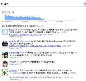 실시간검색 썸네일형 리스트형 다음의 실시간, 소셜검색은 어떤 모습일까? 네이버에 이어 다음에서도 드디어 소셜을 접목하기 시작했다. (네이버 소셜전략 관련 포스트: http://ggamnyang.com/854) 카페, 블로그 등의 최신글을 실시간으로 제공하는 '라이브 스토리'와 트위터, 요즘 등의 실시간 정보를 검색하는 '실시간 검색'이 있다. 여기에 국내외 대표적인 SNS 데이터와 이용자 관련 검색이 가능한 소셜검색을 국내 처음으로 선보인다. 이번에 적용되는 소셜 웹검색은 다음의 마이크로블로그인 요즘, 트위터뿐 아니라 페이스북, 미투데이 등 SNS를 검색할 수 있다. 이용자 아이디를 검색하면 해당 이용자의 주요 관심 키워드, 비슷한 관심을 가진 이용자를 함께 추출해 보여준다. 아직까지 국내에서 페이스북 내의 콘텐츠를 검색해준 검색엔진은 없었던 것 같은데, 다음이 그 최초가 .. 더보기 구글과 다음의 트위터를 검색하는 실시간 검색 트위터를 검색하는 실시간 검색 서비스가 구글과 다음에서 출시되었는데, 나름 재미있어서 소개해 본다. 실시간 검색이라고는 하나 모든 웹사이트를 실시간 검색하는 것이 아니라 트위터만을 대상으로 실시간 검색한다. 구글의 실시간 검색으로 '아이폰'을 검색해 봤다.(http://www.google.co.kr/search?hl=ko&newwindow=1&complete=1&prmdo=1&tbs=mbl:1&q=아이폰&btnG=검색&aq=f&aqi=&aql=&oq=&gs_rfai=) 구글의 실시간 검색의 장점은 시간대별로 검색결과를 쪼개서 볼 수 있다는 장점이 있다. 검색결과에서 상단의 그래프 모양을 클릭해 보면 그 시간대의 검색결과만 보여진다. 정말 대단한 기능이라는 생각이 든다. 저 트윗 하나하나에 시간 데이터가 .. 더보기 이전 1 다음