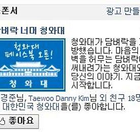 청와대 페이스북 페이지 썸네일형 리스트형 청와대가 페이스북에서 광고까지 한다? 페이스북에서 참 희안한 것을 보았다. 바로 청와대 페이스북 페이지 광고! 진짜일까? 캡쳐화면을 준비했다. 유튜브에 이어 이제는 페이스북이 대세라고 생각하나 보다. 그래서 국민과 소통하기 위해 페이스북 페이지를 만들었겠지~ 근데 좀 웃기지 않나? 유튜브는 실명인증 해야 한다고 해서 국내 사업을 접게 만들더니.. 왜 페이스북은 가만 냅두나? 거기다기 이젠 페이스북에 광고까지 올리고~ 진짜 이해되지 않는 MB정부다. 일관성도 없고, 아무것도 없다. 짜증만 남아 있을 뿐이다. MB정부에 촉구하는 바이다! 페이스북 측에 실명인증 도입해야 한다고 강력하게 주장해보기 바란다. 어떤 결과가 나올지 사뭇 기대된다. 더보기 이전 1 다음