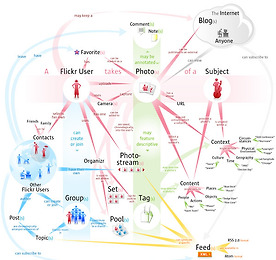 컨셉맵 썸네일형 리스트형 플리커 컨셉맵입니다. 웹2.0 사진 공유 사이트인 플리커(http://www.flickr.com/)의 컨셉맵입니다. 모식도라고도 할 수 있을 것입니다. 이 그림 하나로 플리커가 어떤 사이트인지 단번에 알 수가 있습니다. 출처: http://www.flickr.com/photos/bryce/58299511/ 사진과 태그가 서비스의 중심에 있으면서 소셜 오브젝트의 역할을 하고 있습니다. 사진과 태그를 중심으로 포토와 포토, 사람과 사람, 포토와 사람이 연결되는 것입니다. 이러한 매개체가 있어야만 소셜한 서비스가 성공할 수 있는 것입니다. 그리고 플리커를 넘어 블로그와의 연결도 보여주고 있습니다. 플랫폼의 개방이라고나 할까요? 천천히 보시면서 그림을 해석해보시면 많은 도움이 되실 것 입니다. 특히 서비스기획을 하시는 분이라면 스토.. 더보기 이전 1 다음